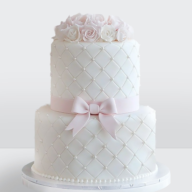 0 Торт 2 яруса с розовым бантом и розами № 821