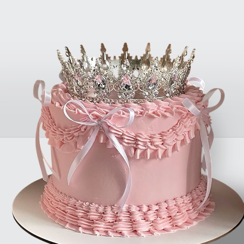 Торт ламбет розовый с короной и лентами с изящным декором и гармоничной композицией оформления № 846