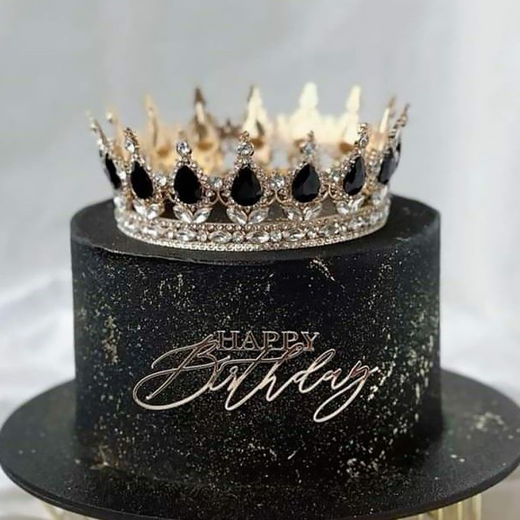 Торт черный мраморный с золотой короной и надписью с эффектным декором и благородной текстурой № 851