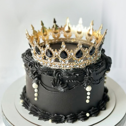 Торт черный ламбет с бусинами и короной с изящным декором и эффектной контрастной композицией № 858