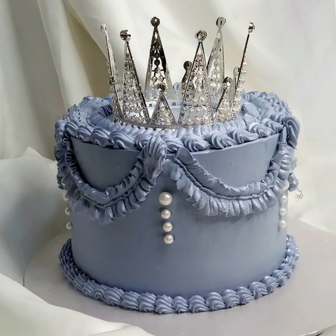 Торт голубой в стиле ламбет с серебряной короной с изящным декором и элегантной композицией № 860