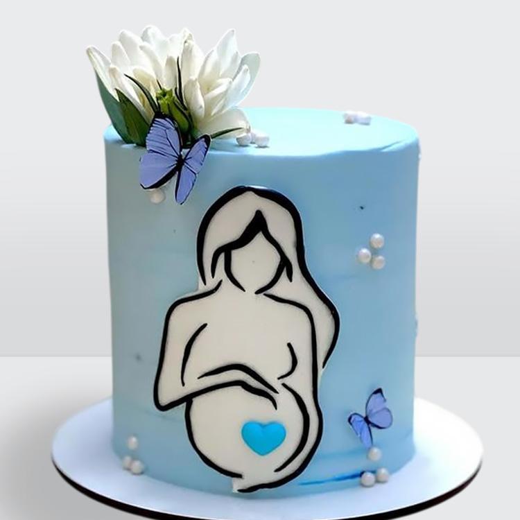 Голубой торт для беременной мальчиком с бабочками и цветком № 964