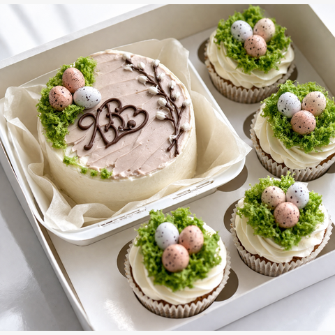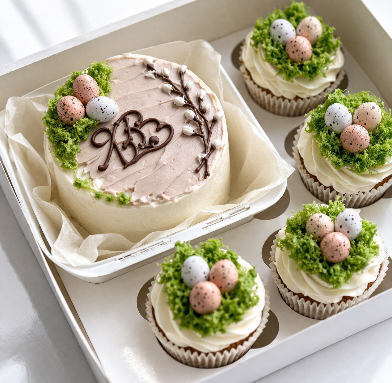 Бенто торт с капкейками на пасху с перепелиными яичками № 967