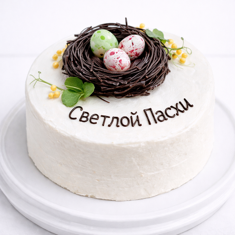 Бенто торт на пасху с гнездом из шоколада и яичками. Светлой Пасхи № 973