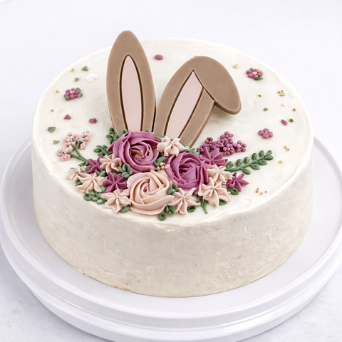Бенто торт пасхальный с кремовыми розами и ушками кролика № 975