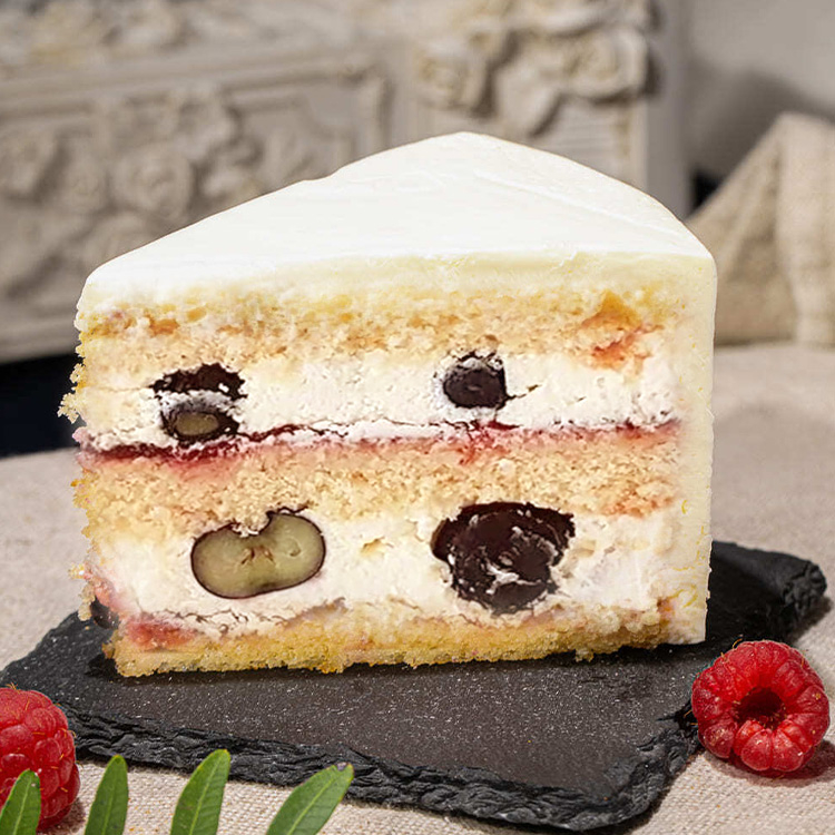 Cочный ванильный бисквит и сливочный крем на основе творожного сыра и натуральных сливок с кусочками ягод.